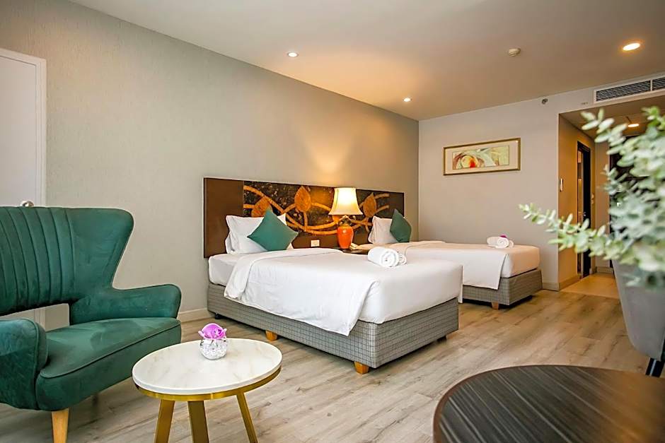Offering free toiletries, this twin room includes a private bathroom with a walk-in shower, a bath and a bidet. The air-conditioned twin room offers a TV with cable channels, a mini-bar, a tea and coffee maker, a wardrobe as well as city views. The unit offers 2 beds.